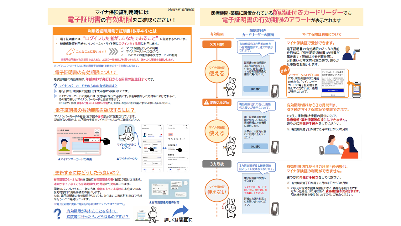 マイナ保険証利用時には電子証明書の有効期限をご確認ください!