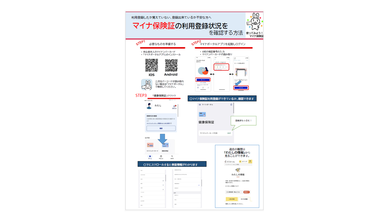 マイナ保険証の利用登録をしたかどうか覚えていない、または利用登録の手続きをしたがきちんと利用登録されているかどうか不安なので確認したいという場合は、マイナポータルアプリから確認をすることができます。